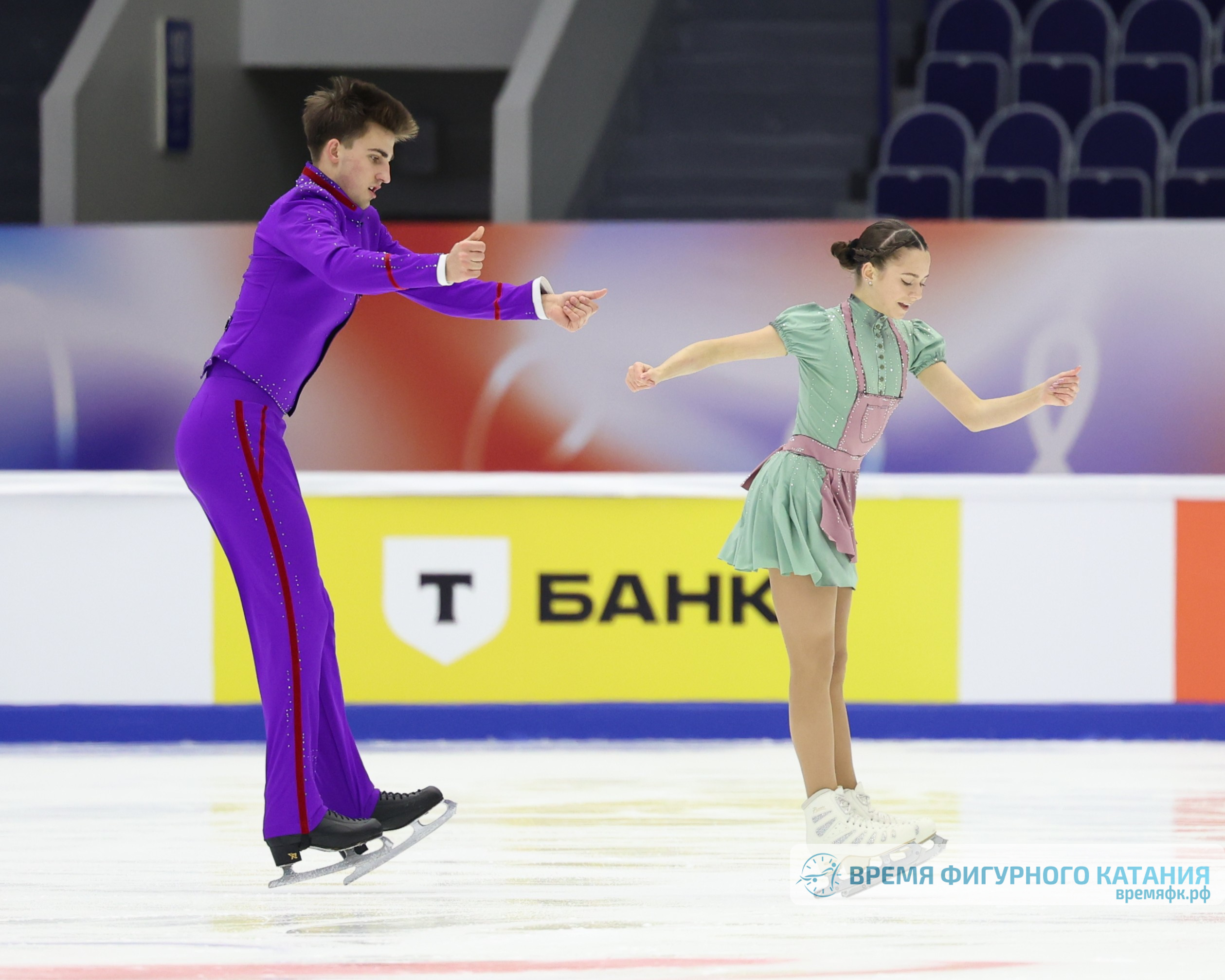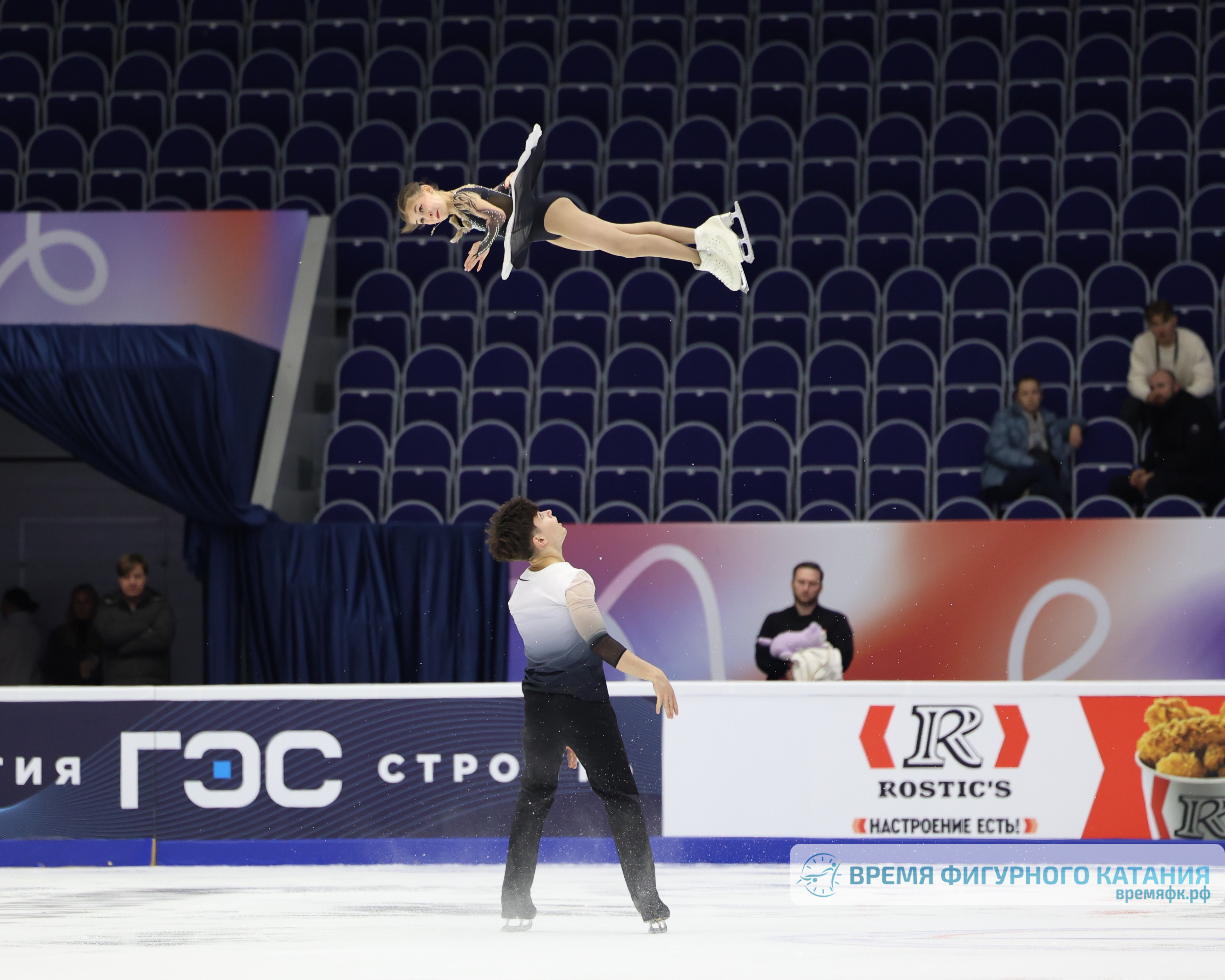 Таисия Гусева и Даниил Овчинников блестяще выполнили сложный четверной подкрут в начале программы, который судьи оценили на третий уровень, исполнили сложный прыжковый контент (правда, на лутце и флипе судьи отметили неясные ребра), но под конец программы допустили две серьезные ошибки - остались без поддержки и партнер упал на совместном кантилевере при выполнении хореографической последовательности.