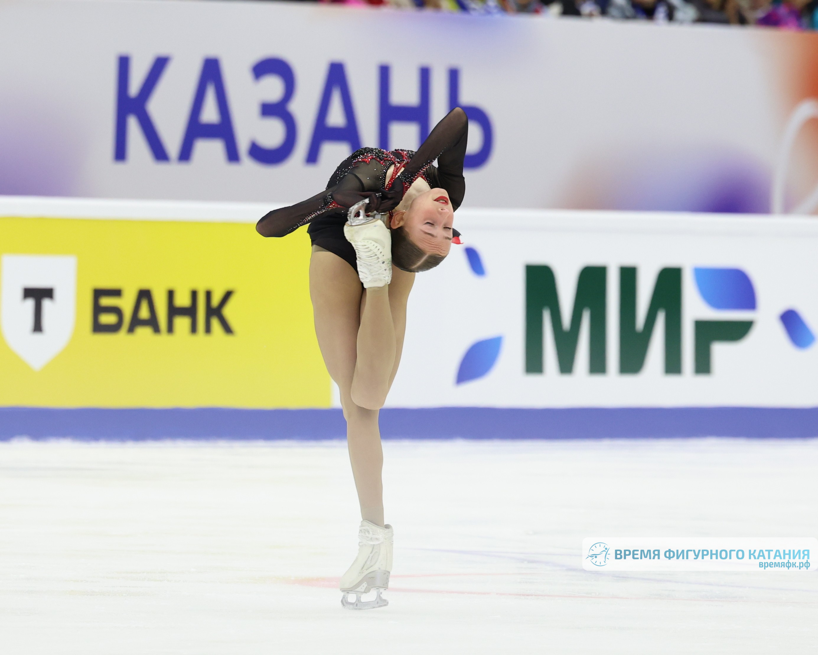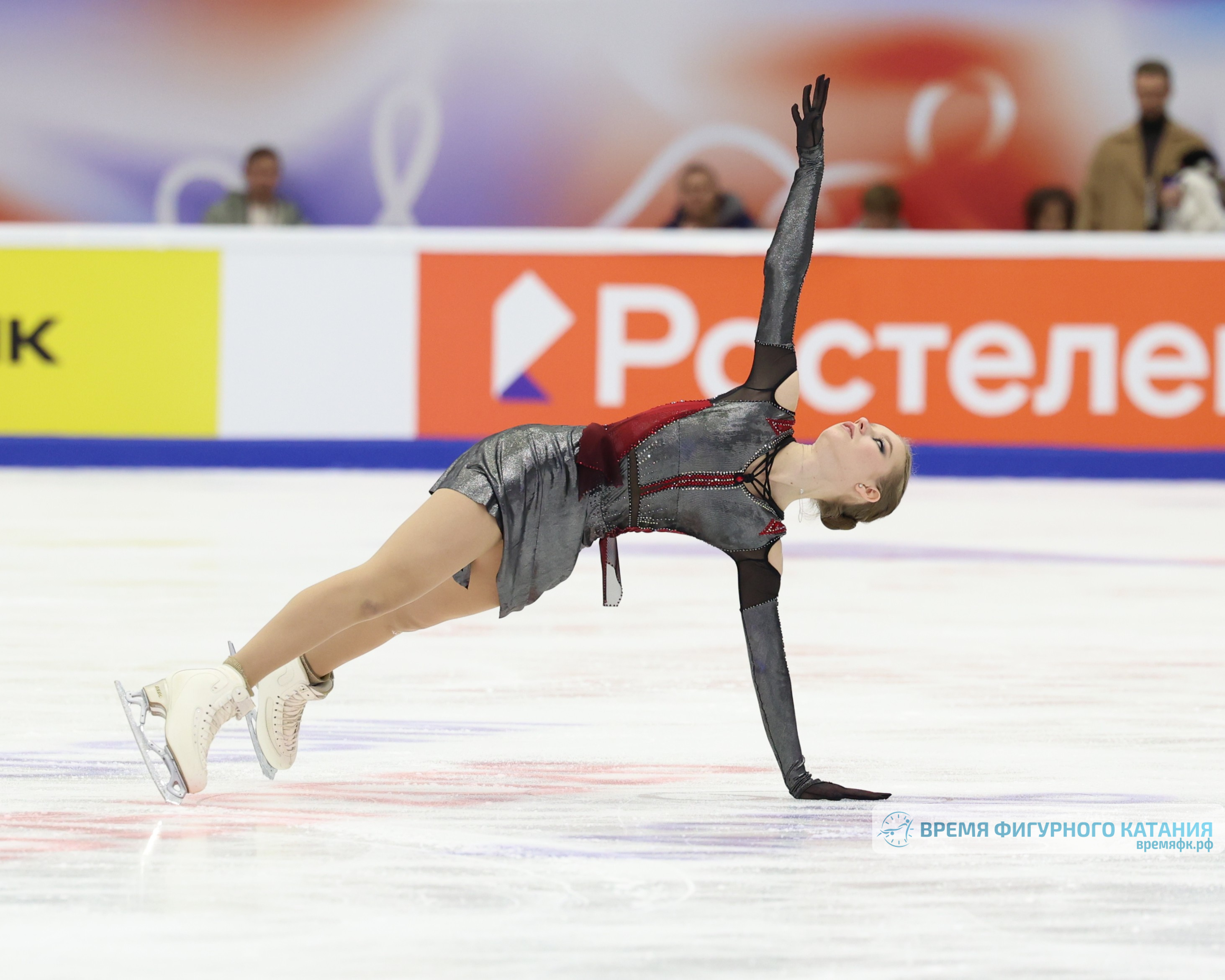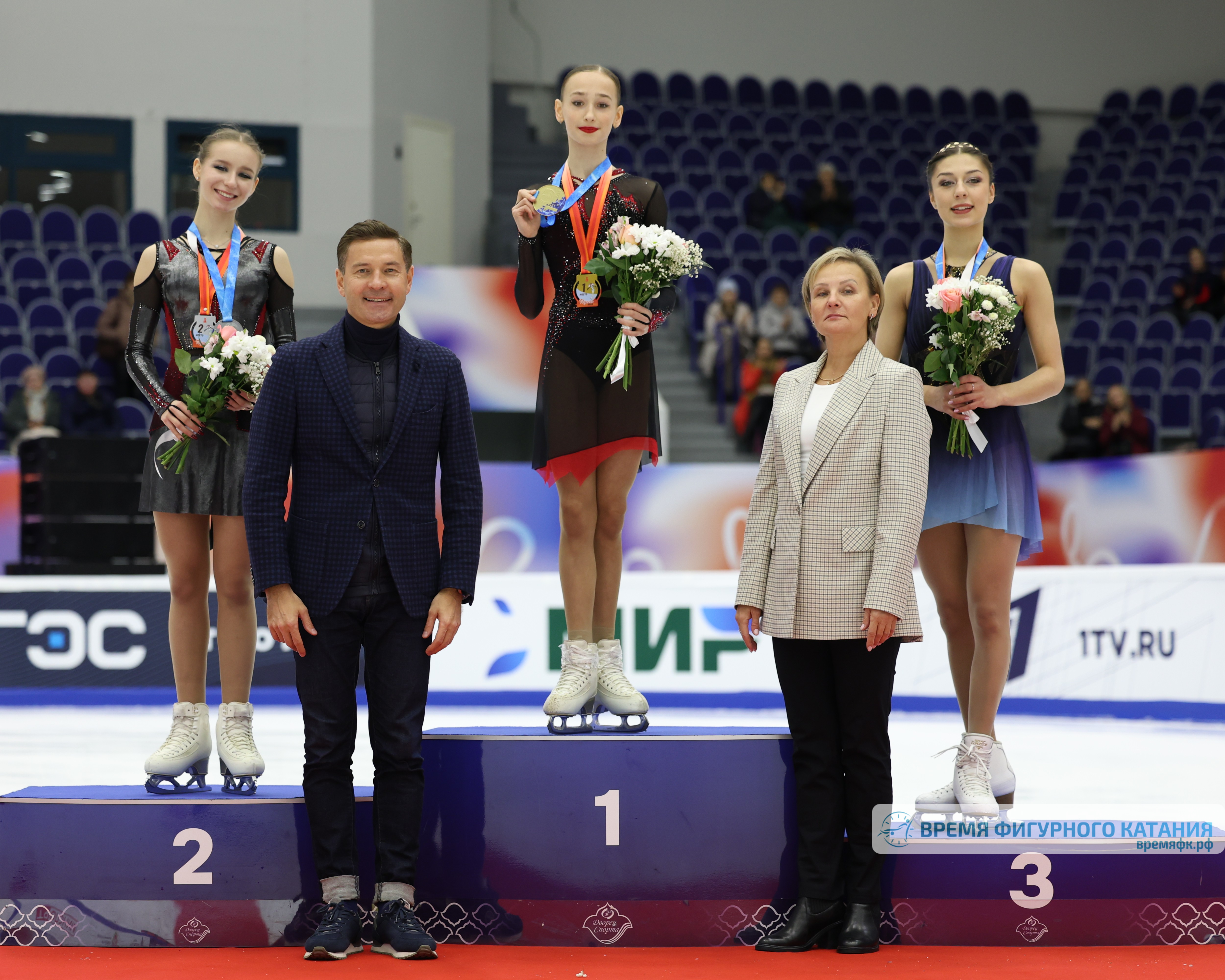 Бронзовую награду завоевала Анна Фролова. Серебряный призер этапа в Магнитогорске допустила в произвольной программе ошибки на двух прыжковых элементах и финальном вращении и уступила Марии Захаровой, которая хоть и не безошибочно исполнила два четверных тулупа. Однако запас по короткой программе позволил занять место на пьедестале.