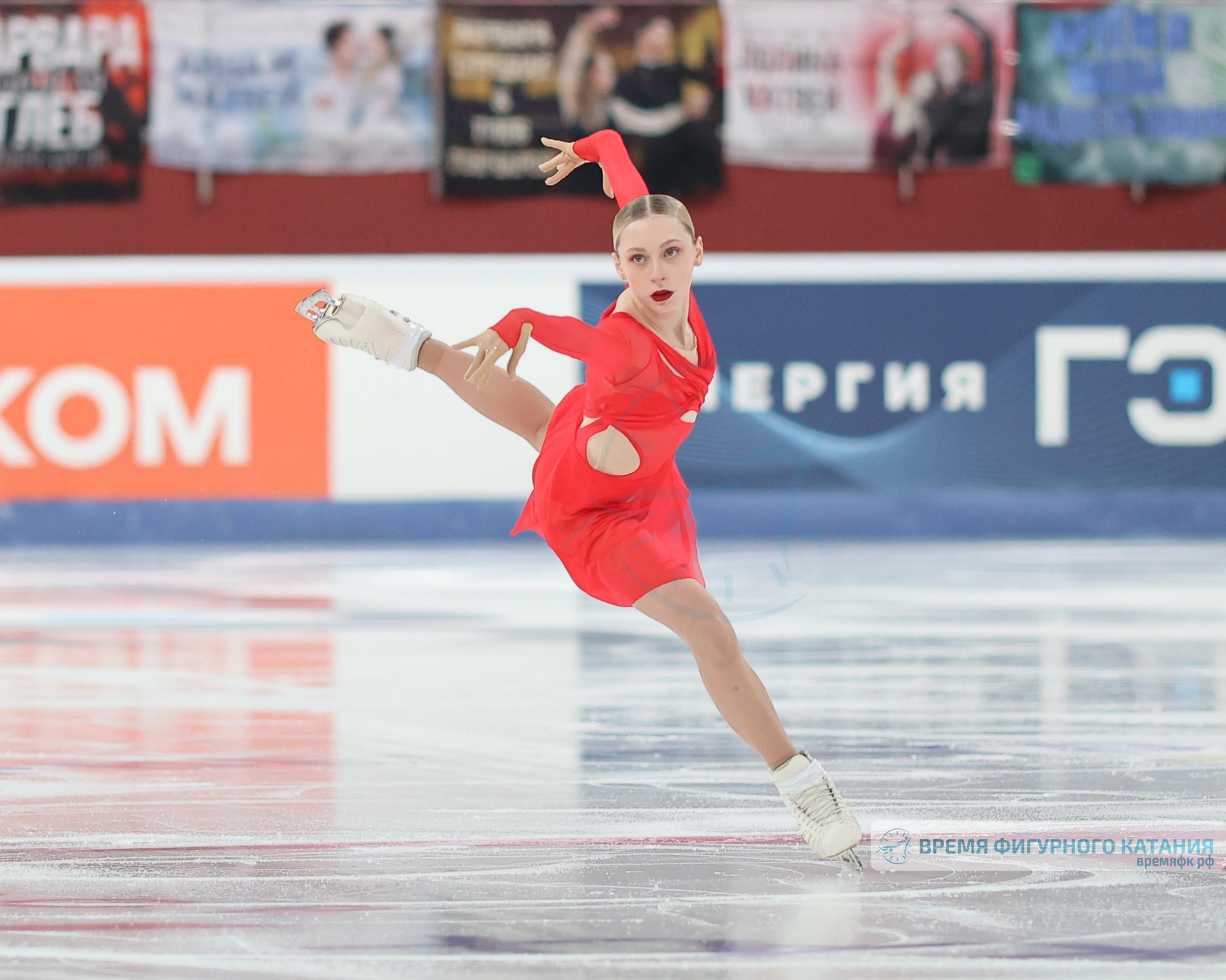 У девушек лидерство захватила Елена Костылева, исполнив тройной Аксель в каскаде с тройным тулупом.