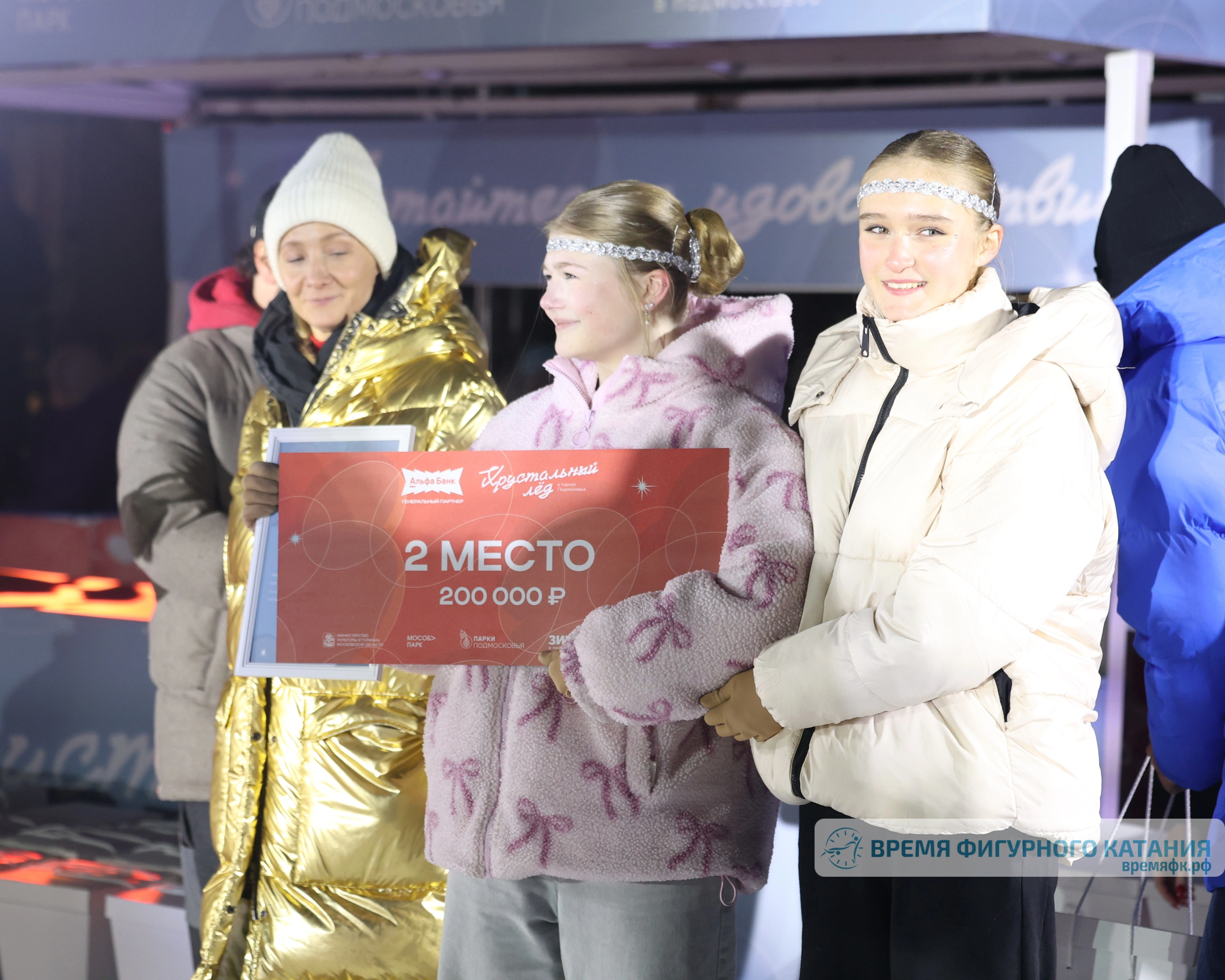 Второе место разделили дуэт "Кометы" (г. о. Бронницы) и Ольга Демина (Раменский м. о.) - 200 тыс. руб. (по 100 тыс. руб. дуэту и представительнице одиночного катания).