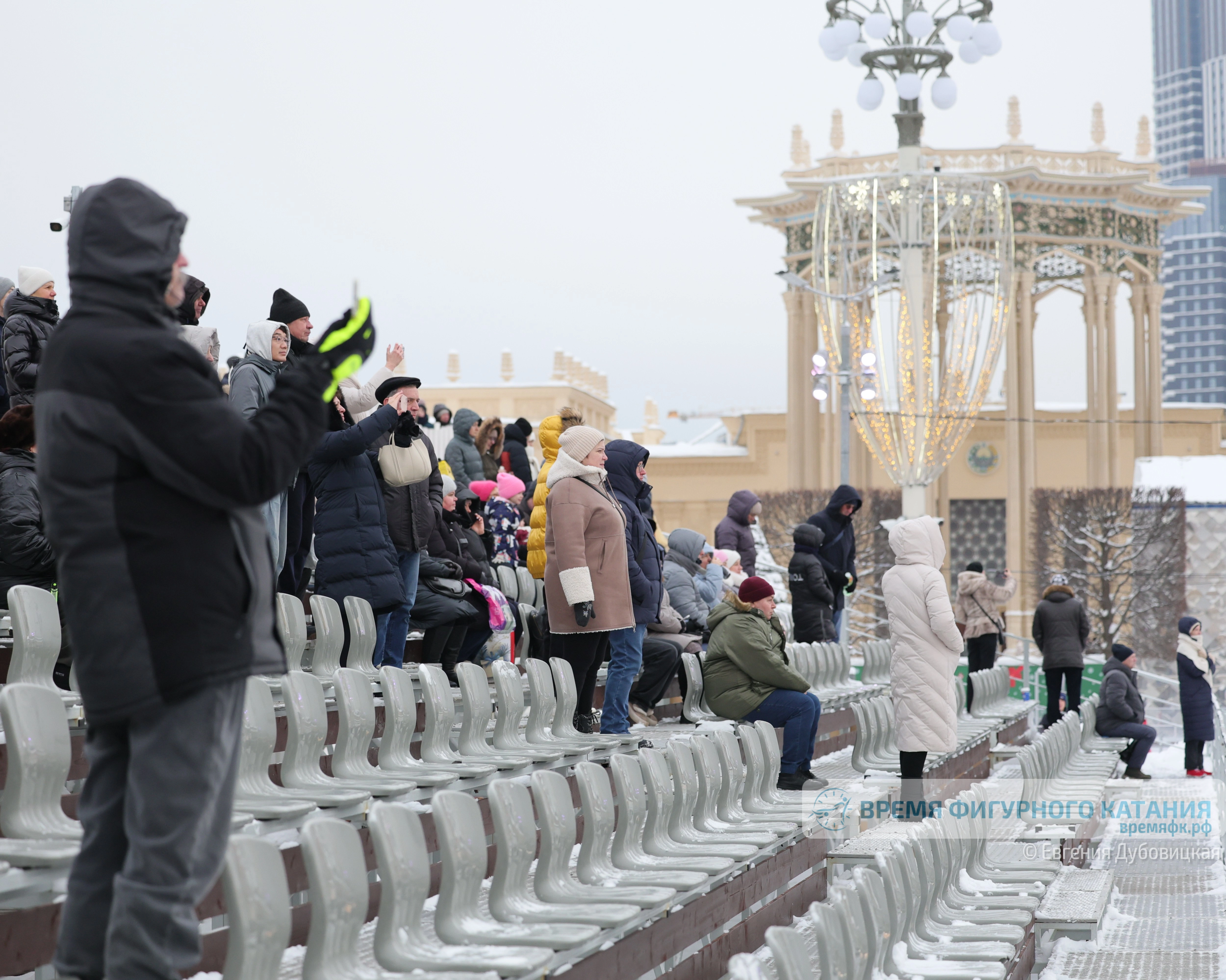В этом году увеличена и площадь для участников шоу, и места для зрителей в коньках. Увеличено и количество мест на трибуне, однако разместили ее на таком расстоянии, что впору брать с собой бинокль.