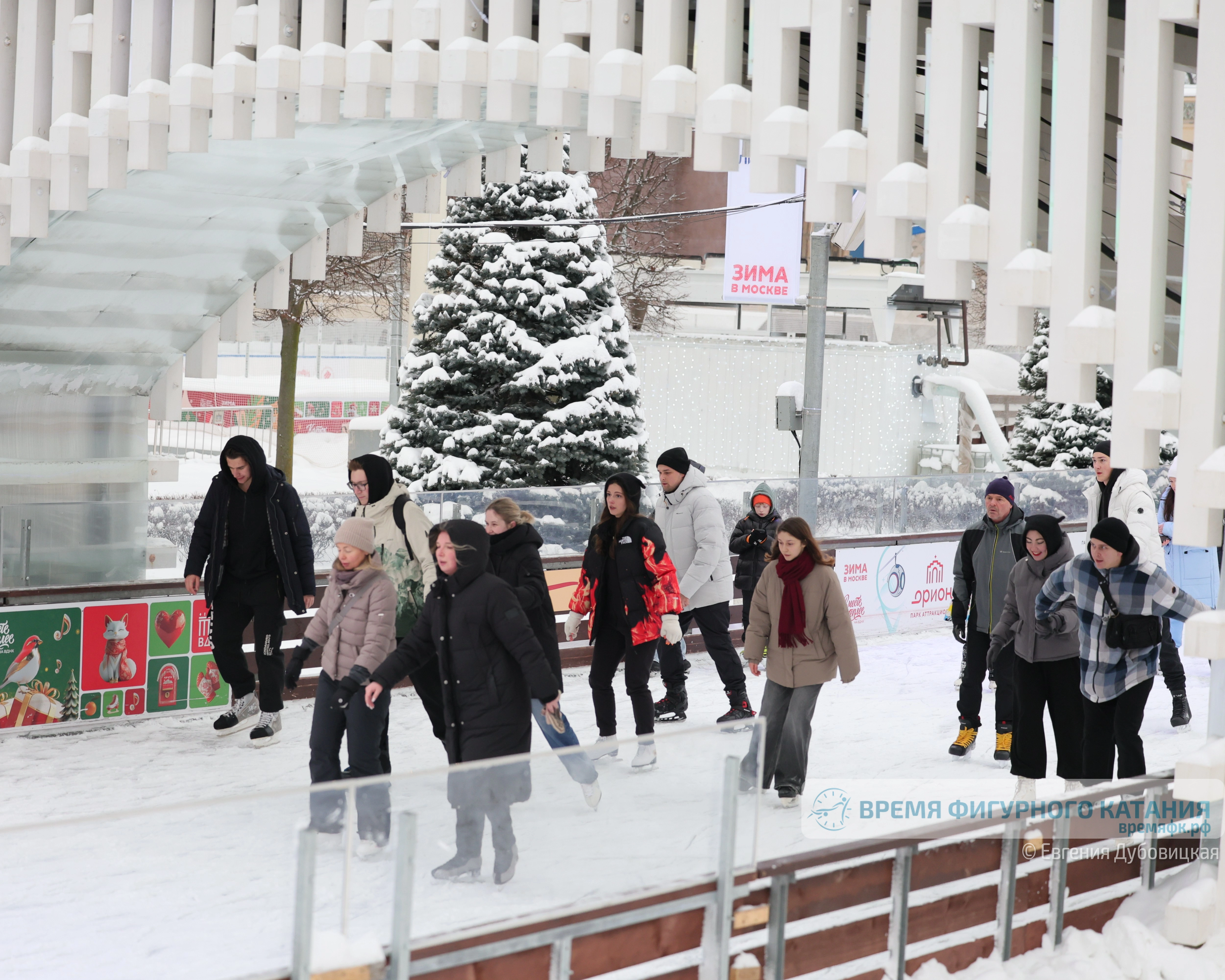 Кстати, массовое катание в этом году пользуется особой популярностью: билеты на дневные и вечерние сеансы отсутствуют не только день-в-день, но и на последующие дни. И это не только на ВДНХ. В "Лужниках" на определенные сеансы билеты без проката коньков выкуплены до 7 числа включительно.